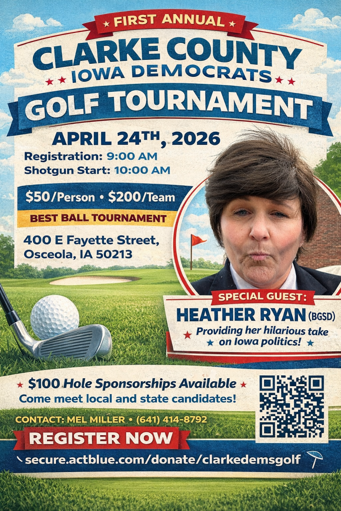 3rd Congressional District Democrats: Sunday April 16, 2-4pm, Osceola Municipal Golf Course north entry.